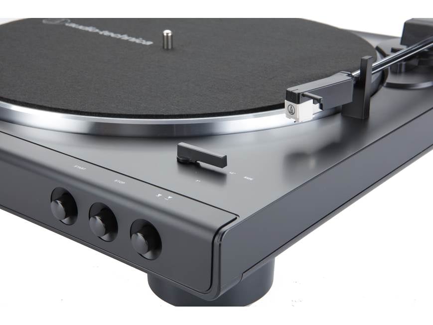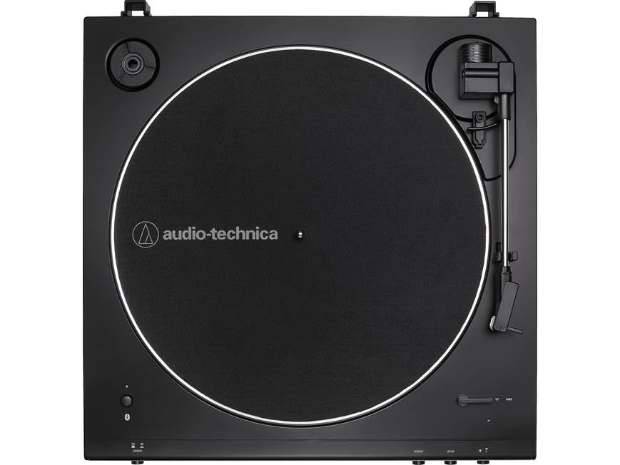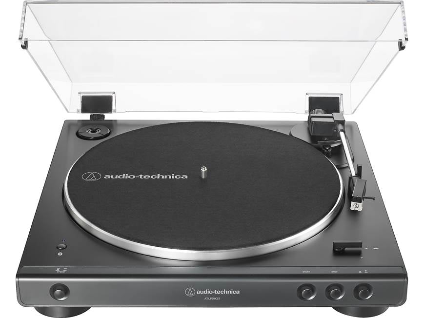 This fully automatic belt-drive turntable offers the convenience of wireless Bluetooth connectivity paired with high-fidelity vinyl audio. Integrated aptX technology ensures superior sound quality when streaming to compatible speakers or headphones. The switchable built-in phono preamp allows for versatile connection to various home stereo systems and powered components. A die-cast aluminum platter minimizes vibration to provide clear, consistent playback across both 33-1/3 and 45 rpm records. The tonearm is equipped with a Dual Moving Magnet cartridge and replaceable stylus for reliable performance and easy maintenance.