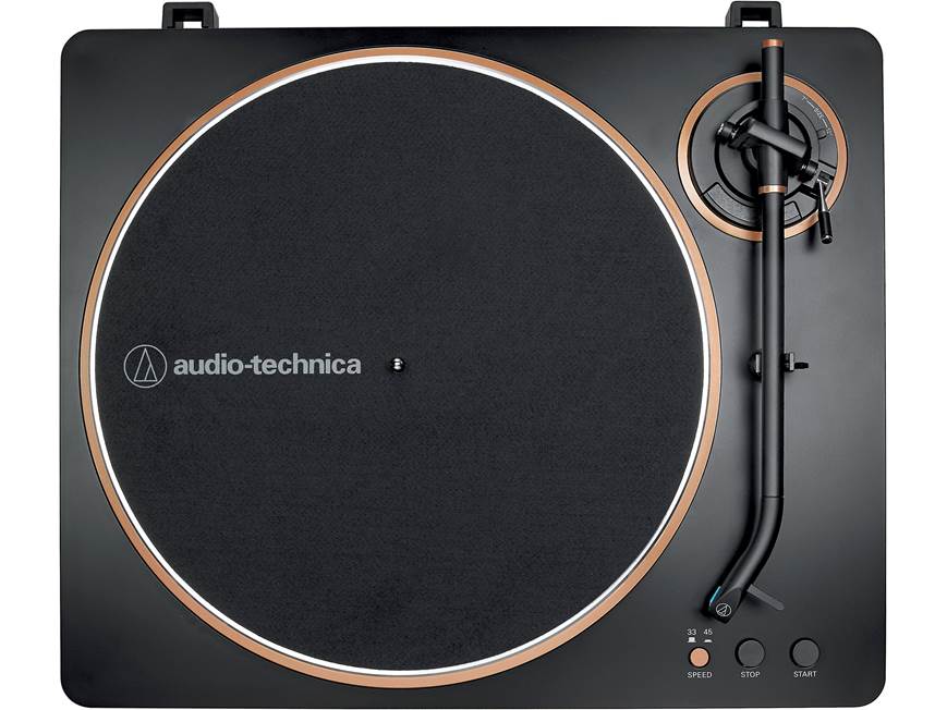 This fully automatic belt-driven turntable provides a seamless vinyl listening experience through its integrated start, stop, and tonearm return functions. The anti-resonance die-cast aluminum platter reduces vibration to ensure clear audio reproduction across 33-1/3 and 45 rpm speeds. Equipped with an AT-VM95C dual moving magnet cartridge, the system delivers precise tracking and a wide frequency response of 20-20,000 Hz. A switchable built-in phono preamplifier allows for direct connection to any audio system via standard RCA inputs. The sleek chassis includes a removable hinged dust cover and felt mat to protect your collection and maintain peak performance.