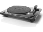 The Denon DP-400 features a sophisticated S-shaped tonearm designed to optimize tracking and minimize harmonic distortion for superior audio clarity. Its integrated phono equalizer allows for seamless connection to any amplifier or system via standard RCA inputs. This belt-driven turntable supports three playback speeds, including 78 rpm, ensuring compatibility with a wide range of vinyl collections. A semi-automatic design protects your records by lifting the tonearm and stopping the platter once a side is finished. The unique dust cover serves a dual purpose by functioning as a display stand for your album artwork during playback.