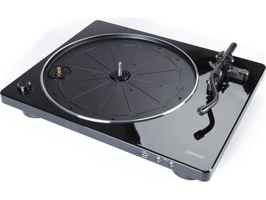 The Denon DP-450USB features a sophisticated S-shaped tonearm designed to optimize tracking and reduce harmonic distortion for superior audio fidelity. An integrated USB-A port allows for seamless digitization of vinyl collections directly to a thumb drive without the need for a computer. The built-in phono equalizer provides versatile connectivity options, supporting both standard line inputs and dedicated phono stages. Precision engineering includes a weighted platter and solid base construction to minimize external vibrations during high-fidelity playback. This semi-automatic unit supports three speeds and includes a uniquely designed dust cover that doubles as a functional album stand.