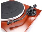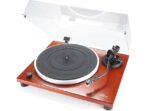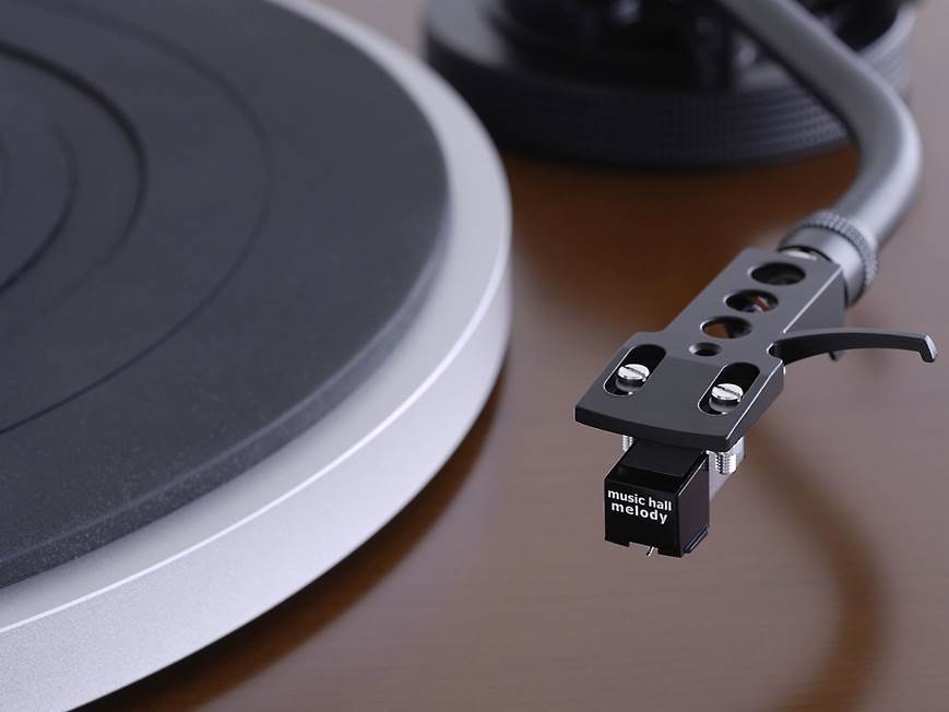 This belt-driven turntable features a real cherry wood veneer finish for classic aesthetic appeal and superior resonance control. A built-in switchable phono preamp allows for versatile connection to any audio system or powered speakers without requiring dedicated hardware. The 9-inch curved aluminum tonearm comes pre-mounted with a Music Hall Melody cartridge for immediate high-fidelity playback. Its die-cast aluminum platter and rubber mat effectively dampen vibrations to ensure stable tracking and clear sound reproduction. Three-speed operation supports 33-1/3, 45, and 78 rpm records to accommodate diverse vinyl collections.
